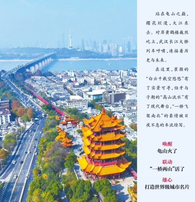 唤醒龟山,是武汉迈向世界知名文化旅游目的地充满想象力的一笔。“一桥两山”贯通山水文脉,从此山水形胜不再是纸上概念,而是可观赏、可进入、可感知,一幅“江汉揽胜”的世界级城市画卷徐徐展开。