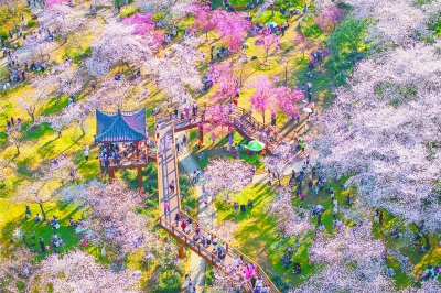 东湖樱花园花开正盛。