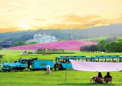 在木兰草原,数十万株芝樱织成一片粉色“地毯”,游客们骑马穿行花海,在草原上放风筝、搭帐篷,享受春日野趣。新推出的“草原夜游”同样火爆,英歌舞、篝火晚会与星空露营交织,让这片草原从早到晚都充满生机。