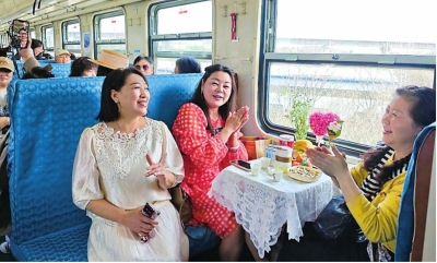小小的方桌上,铺着白色桌布。窗边摆着心形插花,还有瓜子、砂糖橘、茶水。武汉市民秦晓晓和朋友们把下午茶搬上了火车。“生活要有仪式感,我们带着自己做的手工艺品,打卡花开的季节,拍些好看的照片。”秦晓晓说。