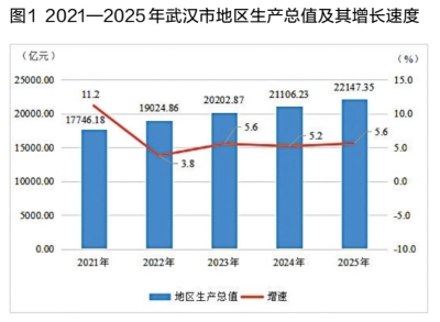 图1 2021—2025年武汉市地区生产总值及其增长速度