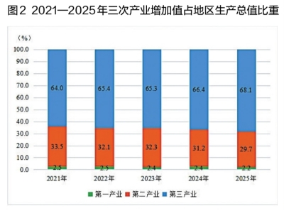 图2 2021—2025年三次产业增加值占地区生产总值比重