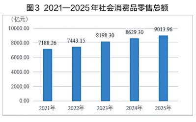 图3 2021—2025年社会消费品零售总额