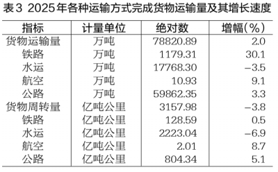 表3 2025年各种运输方式完成货物运输量及其增长速度