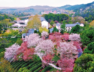 观景平台上,茶艺表演轮番上演,端起一杯新茶,眼前是6万株晚樱织成的花海。这条线路先后入选湖北省16条最美茶园旅游线路、武汉市春季乡村休闲游精品茶园线路。