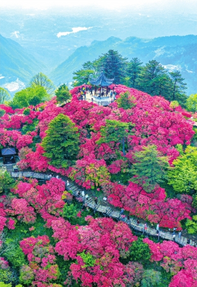 离龟峰山30多公里外的吊桥沟景区,杜鹃花开得正艳。下午4时,导游祝先生从孝感带来的150人旅行团抵达景点,虽然上午已经爬了罗田的薄刀峰,但一行人边看杜鹃花边拍照,兴致依然很高。“孝感到黄冈一日游,收费仅100元,大家热情很高,很快便成团了。”祝先生告诉长江日报记者,武汉都市圈内非常适合上班族周末短途游。