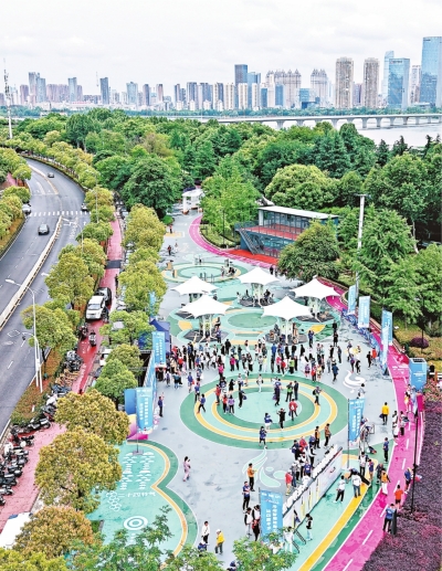 在沙湖智慧体育公园,只要举起左手,就能“请”出武术大师手把手教你练习八段锦、太极拳,屏幕上还能实时给你的动作打分;在健身器材上练臂力旋转,就可以给手机无线充电,想充得快运动速度就得提起来,电充好了运动也到位了;“骑”上单车,便可以在熟悉的街景中完成穿越……崭新的沙湖智慧体育公园,就是一个让人来了还想来,在新奇和探索中挥洒汗水、科学健身的新地标。